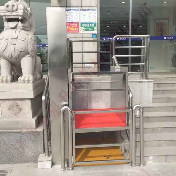 無障礙殘疾人升降平臺(tái)由升降平臺(tái)、導(dǎo)軌和驅(qū)動(dòng)箱等三大部分組成;升降平臺(tái)是由C型鋼材為主體部件,采用“翹板自復(fù)位開關(guān)操作運(yùn)行”, 無基坑式安裝,直接固定于混凝土地面(無底坑室外應(yīng)用情況下,平臺(tái)下方混凝土地面不得低于周圍地面) ,手動(dòng)液壓閥打開時(shí)升降底板能手動(dòng)下降;液壓驅(qū)動(dòng),升降平穩(wěn)安全,外部采用拉絲不銹鋼材料和鋁板靜電噴塑機(jī)箱/面板,外形小巧美觀,不阻礙周邊環(huán)境。殘疾人升降機(jī)直接安裝于地面,無需土建配套地坑,施工簡(jiǎn)便,產(chǎn)品放置戶外不易積水,不易生銹,維護(hù)簡(jiǎn)便,升降高度可達(dá)8米。