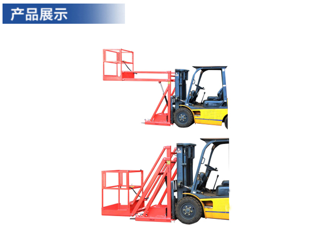 ▲叉車電動載人平臺與叉車連接使用三保險,兩個插銷固定,兩個鏈條鏈接,四個固定T型螺栓在叉車支腿上,確保安全可靠。