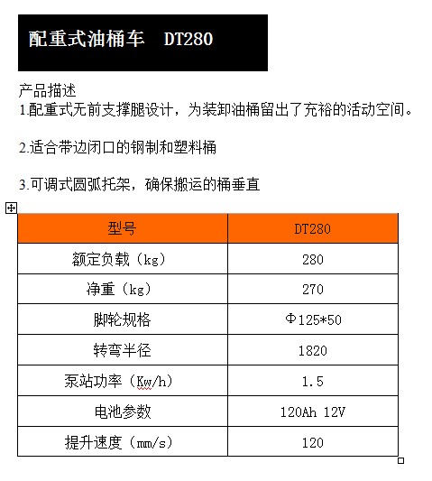 本產(chǎn)品關(guān)鍵詞:裝車配重電動(dòng)油桶堆高車DT280
