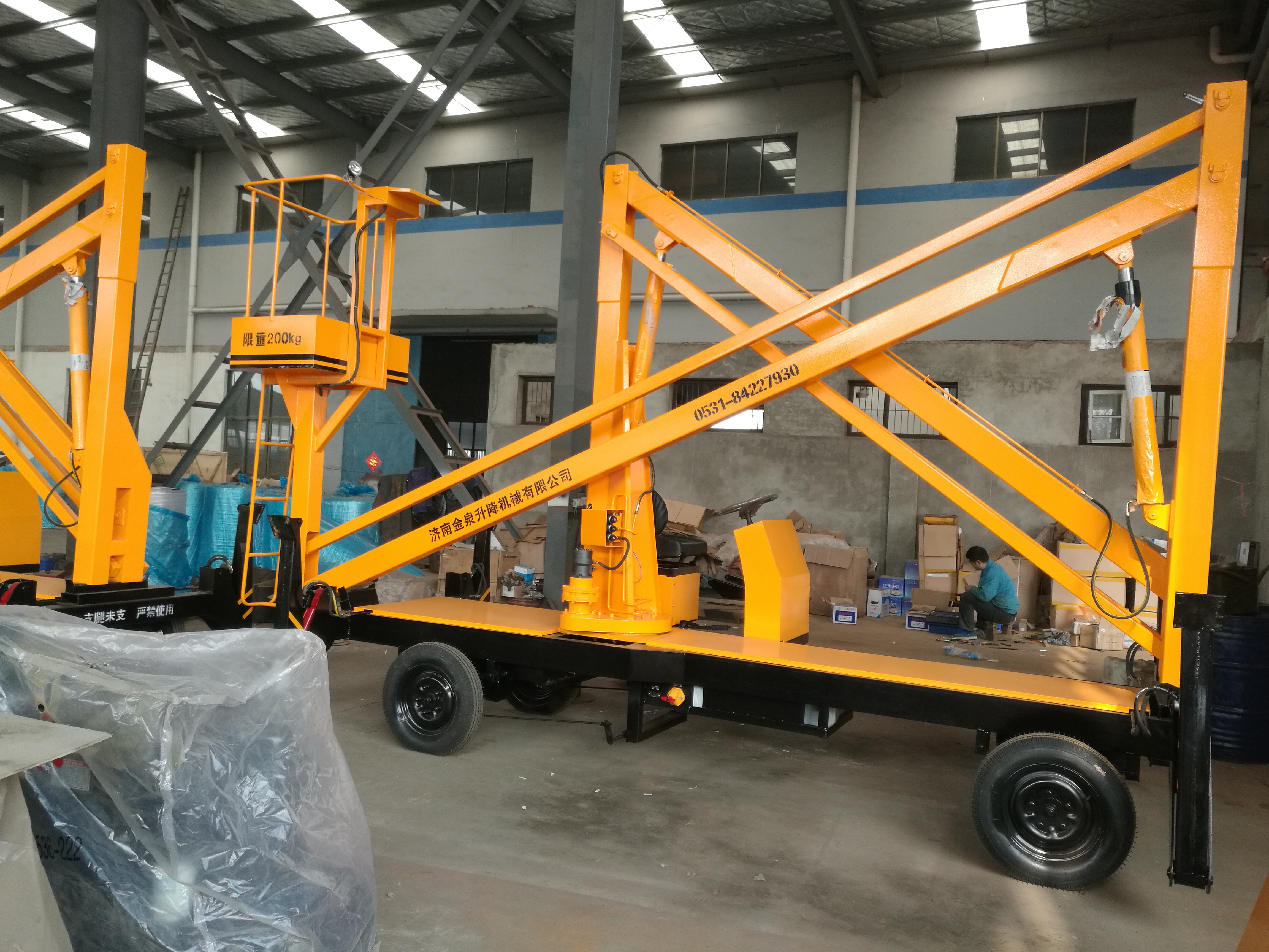 8、旋轉(zhuǎn)工作時,首先要將折臂提升到90°后方能旋轉(zhuǎn)工作,旋轉(zhuǎn)時按動控制按鈕左旋、右旋工作,下降時要注意,將折臂旋轉(zhuǎn)到水平位置后方能下降落位,工作時折臂下嚴禁站人。